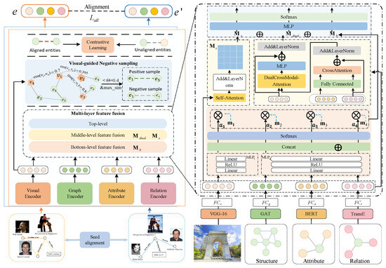 - Chen, Z.; Chen, J.; Zhang, W.; Guo, L.; Fang, Y.; Huang, Y.; Zhang, Y.; Geng, Y.; Pan, J.Z.; Song, W.; et al. Meaformer: Multi-modal entity alignment transformer for meta modality hybrid. In Proceedings of the 31st ACM International Conference on Multimedia, Ottawa, ON, Canada, 29 October–3 November 2023; pp. 3317–3327. [Google Scholar]