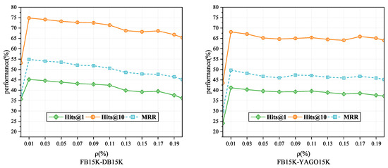 The results show that performance drops significantly when w/o s and w/o i are used because structure and image modalities typically provide rich semantic information about entities. As shown in Table 1, the image coverage rate of the DB15K dataset is significantly higher than that of YAGO15K (with a difference of approximately 27%). This discrepancy leads to FB15K-DB15K exhibiting stronger dependency on the visual modality compared to FB15K-YAGO15K. Ablation studies demonstrate that removing either the visual modality features or the vision-guided negative sampling mechanism notably degrades the model’s performance. The structure modality reflects hierarchical structures and relationships between entities, while the image modality usually contains detailed descriptions related to the entities, such as the color and the relative position. Removing these two modalities results in a significant loss of contextual information. When st-att is removed, the model assigns equal weight to each modality, failing to effectively capture the relative importance and differences among the modalities and leading to performance fluctuations. When cr-att is removed, the model may ignore the complementarity and correlation between the text and image modalities, reducing its expressive power. When mlf is removed, using simple concatenation to fuse modality features, the model’s MRR drops by about 5%, indicating that the model fails to learn the interactions and relative importance between modalities, thus not effectively utilizing the different modality information. Without vgns, the model uses TransE to learn relationship embeddings. Although the final performance is better than removing the relational modality altogether, the model still fails to effectively capture the sample differences introduced by entity heterogeneity. This results in greater independence between the positive and negative samples, introducing noise into the relationship embedding process and reducing the quality of negative samples and relationship embeddings.