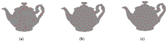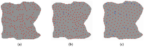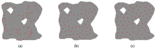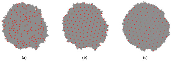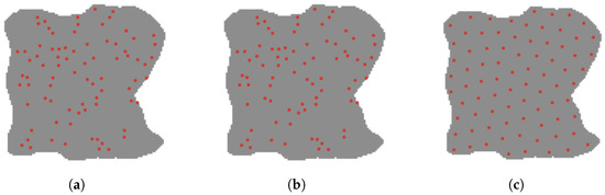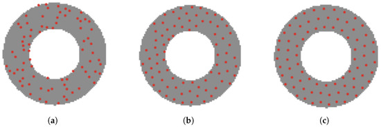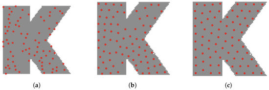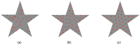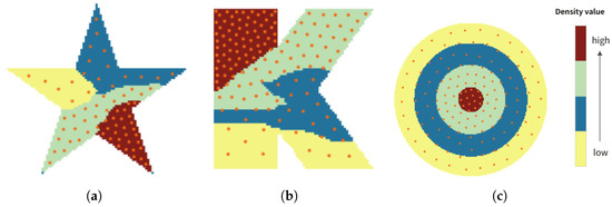 Schematic diagram of multi-densities adaptive coverage. (a) Area is five-pointed star. (b) Area is the letter ‘K’. (c) Area is the multi-layer ring.