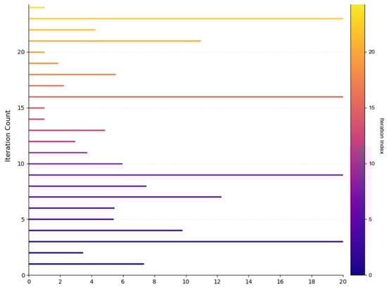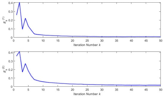 where , and is the learning gain to be designed. Equation (3) formulates the control input that constitutes the core controller architecture, while Equation (4) defines the adaptive parameter-updating mechanism. The algorithm’s innovation resides in its synergistic optimization process, which integrates cross-iteration parameter transfer with error feedback, dynamically calibrating control parameters through historical iteration data and real-time error signals to achieve progressive input refinement.