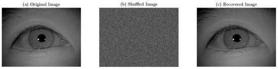 Step 4: Pixel permutation through Algorithm 1: Image Pixel-Shuffling Algorithm. Image shuffling in encryption schemes significantly reduces the index of similarity between the original and shuffled images, effectively obscuring spatial relationships and visual patterns. This low similarity index enhances the encryption’s resistance to statistical analysis and visual inspection, making it substantially more challenging for attackers to derive meaningful information about the original image from the encrypted version []. Figure 6 illustrates visual representation of pixel shuffling.