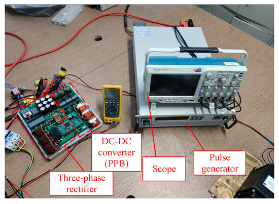 The experimental platform adopts the TMS320F28377D microcontroller (Texas Instruments) as the main controller. The switching devices are IPW60R037CSFD MOSFETs. The control and sampling frequency is set to 20 kHz. A Tektronix MSO 3014 oscilloscope is used for waveform measurement. A pulse generator (model: iT6030C-80-900) is used to simulate pulsed load conditions.