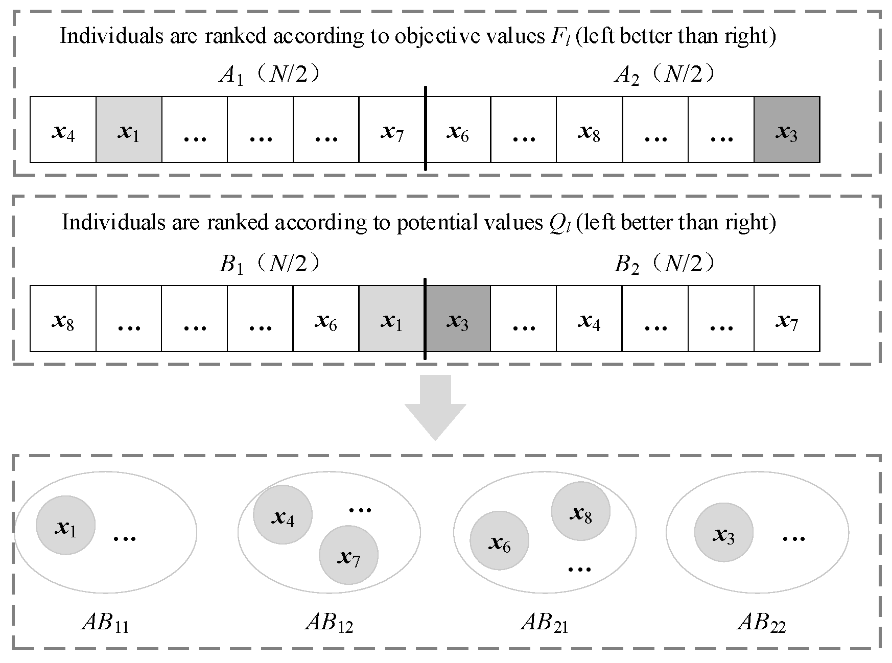 41] randomly grouped the population into three subgroups of equal size at each generation. Each subgroup adopted different search operators. In this way, different search strategies were performed on each individual with the same probability, which enhanced the population diversity. Hu et al. [