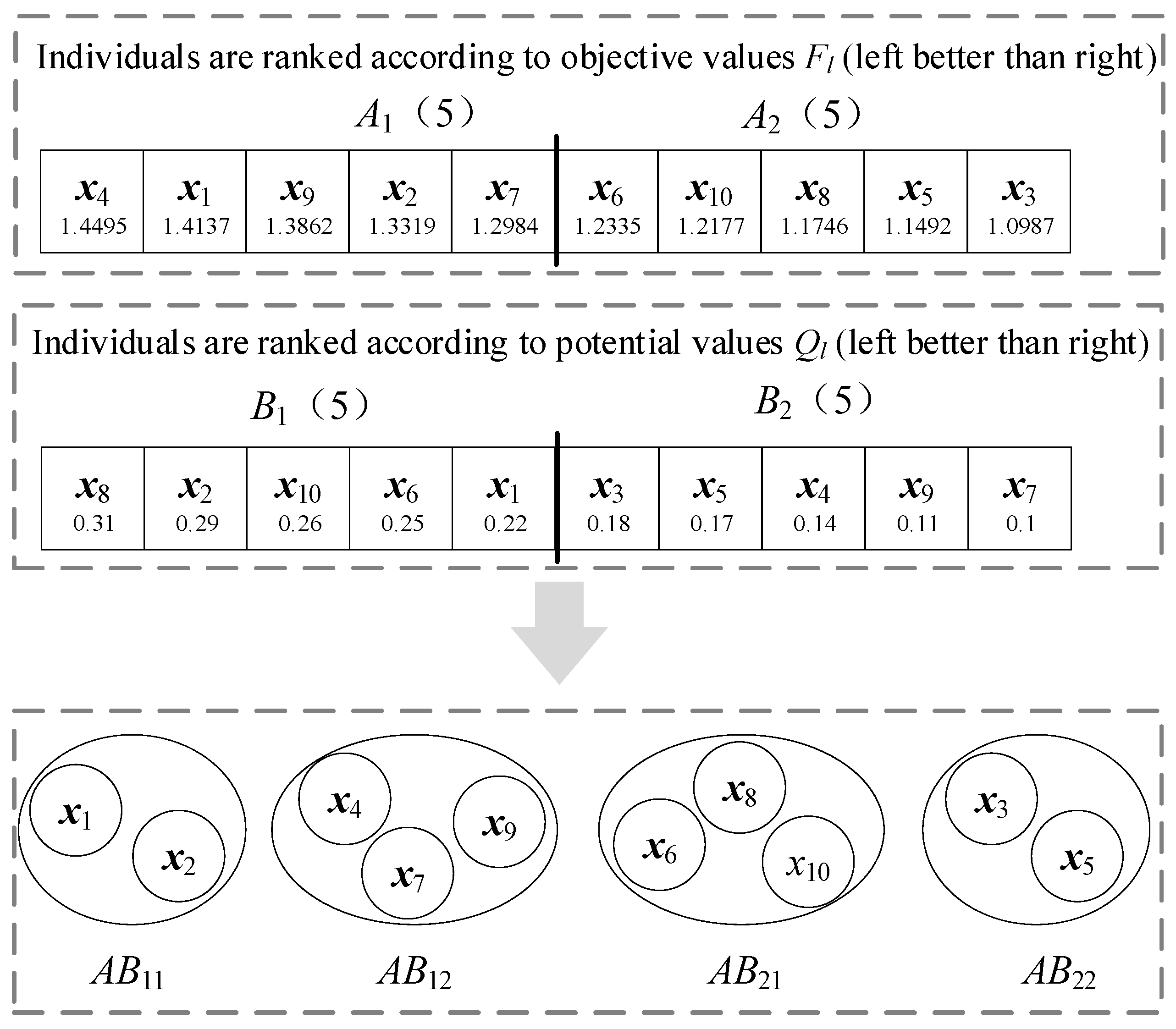 42] grouped the population based on fitness values and particle activity level and improved the original speed and position update methods in PSO. In this way, the grouping mechanism enhanced the efficiency of information exchange between particles.