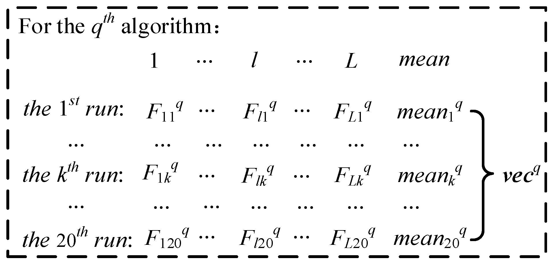 . The 20 average values obtained from 20 runs form a vector