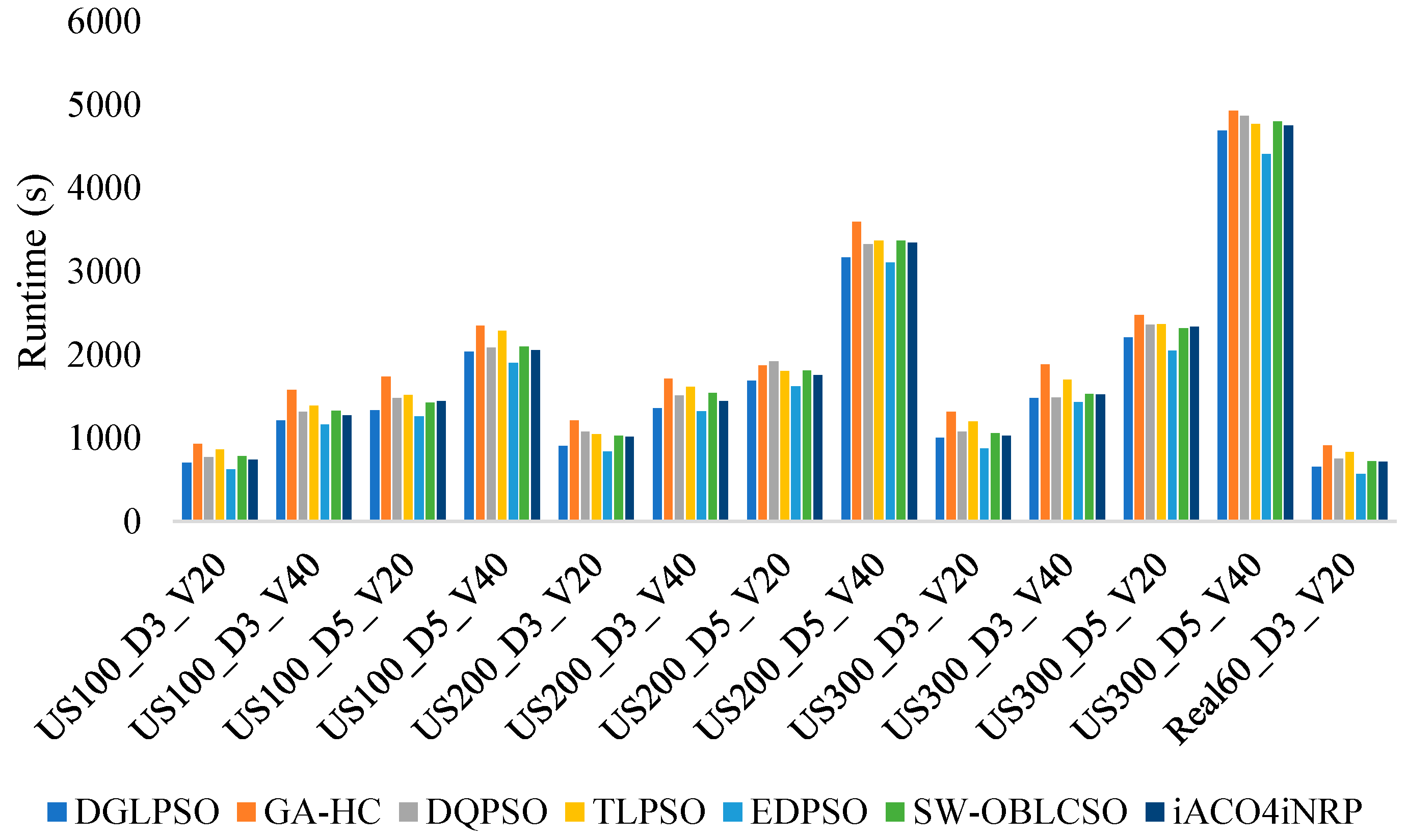 Figure 16 illustrates the average runtime (in seconds) of each algorithm over all instances. It can be observed that the runtime of the proposed DGLPSO is only marginally slower than EDPSO across all instances. This is attributed to EDPSO’s population update mechanism, which accelerates information propagation and enhances computational efficiency. Furthermore, as evidenced by