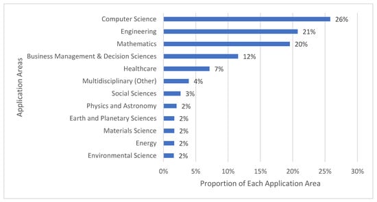 DES as an OR technique can be utilized to solve problems in several sectors and fields of endeavor and to support decision making in operations and production activities. The SCOPUS bibliographic data identifies enormous application areas (over 100). However, we collapsed and merged related areas (e.g., computer science theory, applications, and more) into one category named “computer science.” Figure 3 presents the summary of the identified domains, some of which include computer sciences (26%), engineering (21%), mathematics, business management and decision sciences (20), medical and health sciences, computer science and engineering, business and economics, and arts and humanities. Figure 3 shows twelve disciplines where DES plays a significant role in problem solving, especially systems optimization.