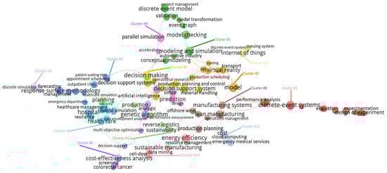Cluster #8: (“operations management,” “production planning,” “lean manufacturing,” and “manufacturing systems”). These themes show another aspect where DES is utilized to streamline operations.