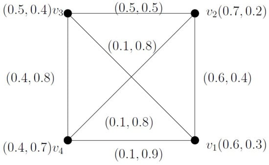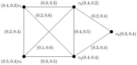 ([14]). An IFG is a pair = where = is the vertex set, and represent the membership degree and the non-membership degree of each element , respectively, and varies in the range [0, 1] for all . , where and are given by , and . Here, varies in the range [0, 1] for all .