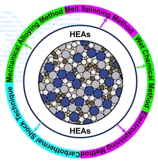The fabrication of HEAs currently relies on several established synthesis routes, including mechanical alloying, melt spinning, wet chemical processing, electrospinning, and the emerging carbothermal shock technique (Figure 2). Each method will be analyzed systematically in subsequent sections.