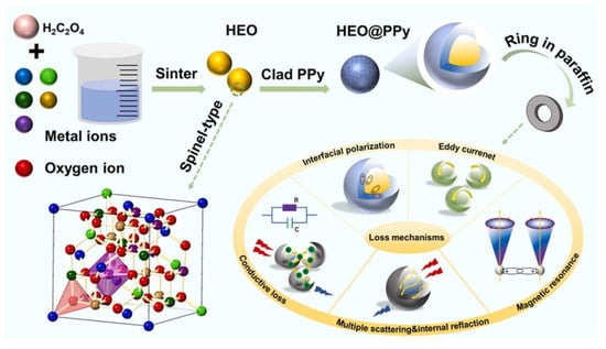 Preparation and electromagnetic wave absorption mechanism of core–shell structured HEO@PPy composite materials. Reproduced with permission from [108], Copyright 2024, Elsevier B.V.