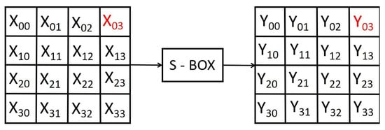 Each byte that employs 16-byte (128-bit) S-Boxes processes subbytes individually. The substitution box uses its nonlinearity characteristic to prevent linear cryptanalysis [].
