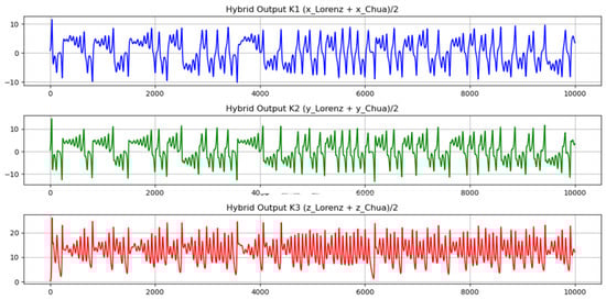 Three outputs generated by the hybrid Lorenz–Chua key generator.