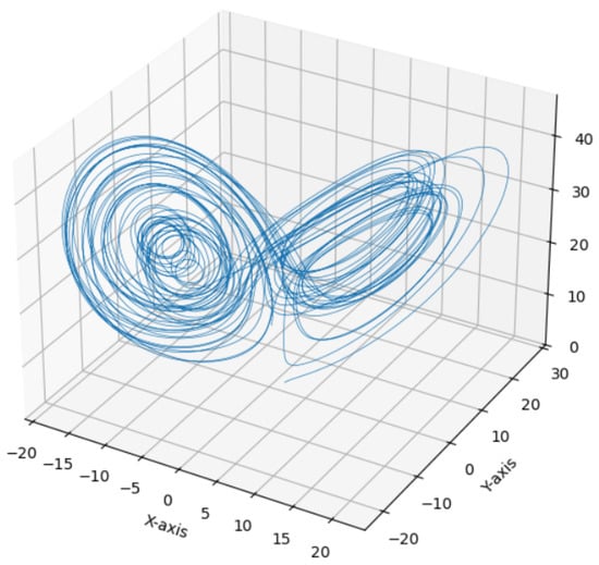 In the Lorenz system, are user-defined control parameters. Using a Euler technique, the Lorenz chaotic system can be represented by Equation (11).