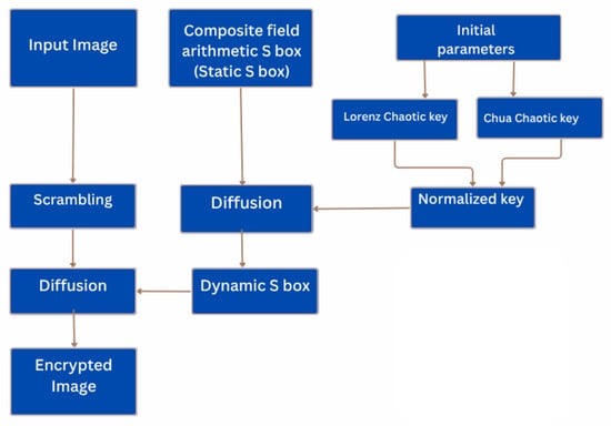 Large amounts of sensitive information can be communicated over a network using images, necessitating the development of strong encryption techniques to secure them [,]. Lorenz equations have been extensively used in various stages of cryptosystem design for image ciphering [,,]. In this study, a symmetric technique was constructed using the Lorenz equations and the Chua function.
