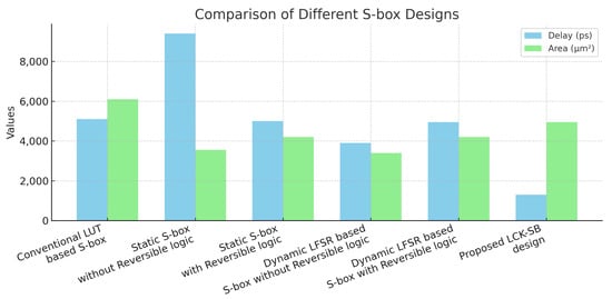 In recent years, reversible computing has become popular. The main factor behind this is the need for low-power products. Losing information also results in energy loss. Information loss occurs when we cannot separate an input from its output []. The work of Karunamurthi et al. (2019) [] suggested a reversible logic cryptographic design that uses a linear feedback shift register (LFSR) to make the key. The reversible logic cryptographic design (RLCD-LFSR) technique improves ASIC performance by 7% over the conventional approach. A dynamic, key-dependent S-box provides significant non-linearity and low correlation coefficients []. A reversible design directly maps the input and output parameters. Consequently, there is no loss of energy or information []. Thapliyal and Zwolinski [] endeavored to develop a secure encryption technique utilizing reversible gates. This project presented a reversible logic-based ALU prototype for a crypto-robot, without concentrating on any particular cryptographic technique. Khan and Perkowski []. Datta et al. [] delineated a 128-bit reversible AES method utilizing the Toffoli gate family. Using the reversible Ex-or-Sum-Of-Products (ESOP) method in this study led to a small improvement in the quantum cost and the number of reversible gates. Due to the S-box’s vulnerability to power analysis attacks, researchers have proposed various methods to enhance its implementation. Researchers initially deduced the combinational gate level using composite arithmetic (Zhang and Parhi, []). An enhanced PPRM architecture of an S-box with high speed was proposed by Manojkumar et al. (2019) [] to encrypt and decrypt mammogramic images. The differential cascade preresolve adiabetic logic (DCPAL)-based S-box was proposed by Prathiba et al. (2018) [] as a defense against differential power analysis attacks.