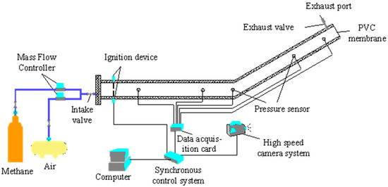 The experimental system included experimental pipelines, gas distribution systems, ignition systems, pressure data acquisition systems, high-speed camera systems, and synchronous control systems.