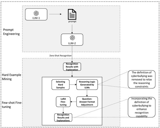 The research framework of this paper is shown in Figure 1. In this paper, we use Meta-Llama-3-8B’s instruction to fine-tune the large language model Meta-Llama-3-8 B-Instruct and propose a Small-Scale Hard-Example Adaptive Tuning Framework (S-HAT), which takes into account zero-sample recognition and model fine-tuning to improve generalization capability and accuracy and enhance interpretability. Through large model inference and LoRA fine-tuning, harmful content can be effectively identified and analyzed. Figure 1 demonstrates the S-HAT framework.