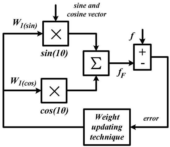 - Estimate fundamental current from the measured load current using the ADALINE method (Expression (5));