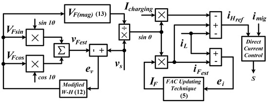 - Extract fundamental voltage components and using a selective filter (Expressions (24) and (25));