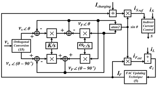 - Estimate the charging current from the measured DC-link voltage using a PI controller;