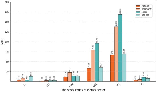 Comparison of MAE and standard deviation of stock forecasting models for metal sector.
