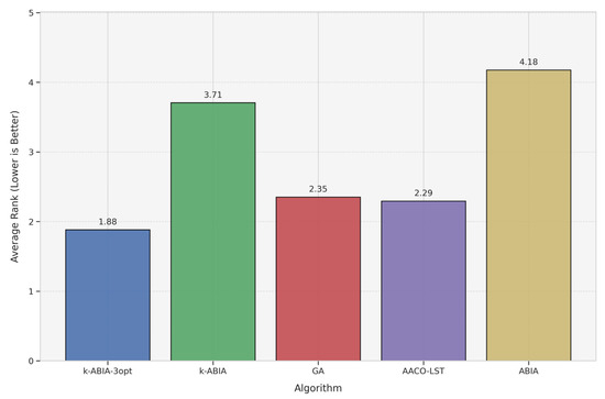 - Across the 17 medium-to-large-scale TSP instances ranging from 51 to 1084 cities, the k-ABIA-3opt not only achieved the top average rank but also produced the best solutions in 7 instances—both metrics highlighting its superior solution quality compared to the other evaluated algorithms.