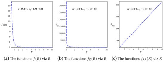 where , , . Upon substituting Equations (10) and (11) into the metric (12), and utilizing the expression for the Ricci scalar R from Equation (13), we obtain