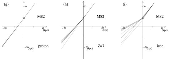Figure 6. Despite this, however, the deviations of the particle trajectories, if they were iron nuclei, are very large in all field models considered.