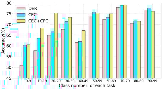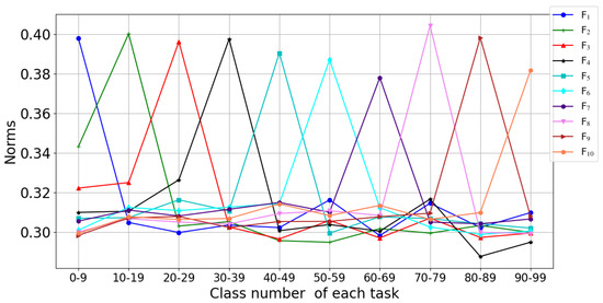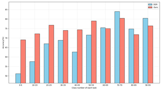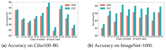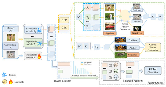 where represents the set of indices corresponding to samples of the same class as , j(j ≠ i)( = )}. is a positive scalar temperature parameter. By using Equation (1), learns to distinguish each class from both the old and new tasks. Old samples obtained from can serve as anchors to aid in learning to distinguish them from other classes. This is particularly beneficial for the model in mitigating the forgetting of old classes.