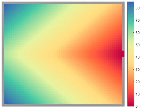 The static potential field models the ship’s layout and is held constant over the course of the evacuation [38,39]. Cells closer to exits exhibit stronger static potential values. The Dijkstra algorithm is employed for its computation [31]: