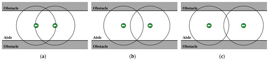 To ensure mutual detectability, the signage’s service radius and the passenger’s visual radius are assumed to be equal and are jointly denoted as R. This geometric relationship is illustrated in Figure 3.
