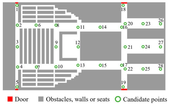 The resulting symmetric candidate point distribution for the theater is illustrated in Figure 10, in which the candidate points are duly numbered.