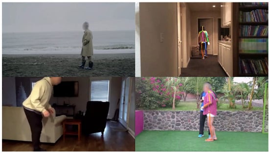 - Dataset Sourcing and Labeling: To test model robustness on highly variable data, an online dataset was compiled by sourcing 294 videos from YouTube using search terms such as “Parkinson’s walk,” “PD gait”, and “Parkinson’s patient walking.” The videos were labeled as ‘PD’ (n = 144, subdivided into mild, moderate, and severe where specified) or ‘healthy’ (n = 150) based on information explicitly provided by the original uploaders in the video title, description, or on-screen text. Some example captures of the online dataset are depicted in Figure 5.