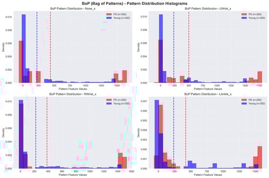 BoP models also involve the change in time-series data into symbolic representations, like SAX. However, BoP enhances this method by creating a “bag” of patterns that captures the frequency and distribution of these symbolic representations in the time series. This approach utilizes the abilities of conventional machine learning algorithms to classify time-series data by analyzing the distribution of patterns. As a result, it becomes a reliable tool to recognize PD. The bar chart in Figure 11 shows the frequency distribution of SAX symbols in a time series. The distribution is used by BoP to generate a ‘bag’ of patterns, which allows for classification based on the existence and organization of these symbols.