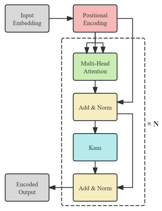 In terms of overall structure, the TFKencoder encoder includes key components such as position encoding, a multi-head attention mechanism, residual connection, and a layer normalization module. Significantly different from traditional methods, we creatively replaced the feed-forward network (FFN) used to model nonlinear transformations with a KAN module. Specifically, we abandoned the MLP structure consisting of two linear layers and ReLU and used the KAN structure constructed by B-spline basis functions and learnable linear combination weights to provide stronger nonlinear expression capabilities and better local modeling capabilities. The core calculation process is as follows: