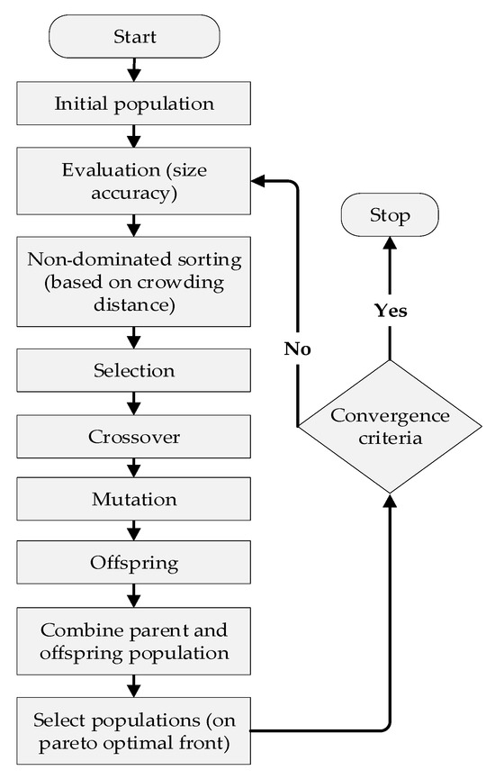 - Vachhani, V.L.; Dabhi, V.K.; Prajapati, H.B. Improving NSGA-II for solving multi objective function optimization problems. In Proceedings of the 2016 International Conference on Computer Communication and Informatics (ICCCI), Coimbatore, India, 4–6 January 2016; pp. 1–6. [Google Scholar] [CrossRef]