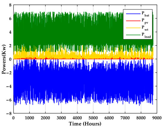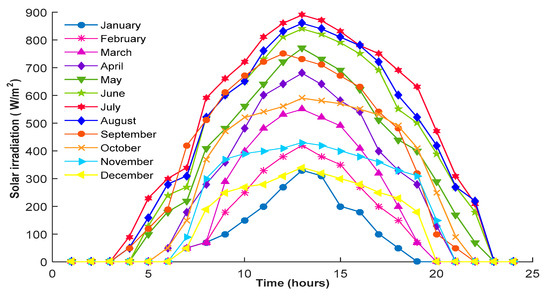In this equation, represents the rated power of the PV panel, SR is the solar radiation (W/m2), SRref is the reference solar radiation (typically 1000 W/m2), and NT is the panel temperature coefficient, which is approximately −3.7 × 10−3 [33].