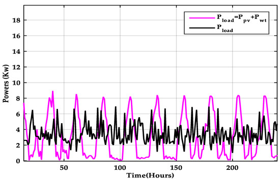 For hybrid solar–wind systems, an iterative optimization method based on the LPSP model was suggested to reduce system costs and maintain power reliability by selecting the ideal number of PV modules, WTs, and batteries [6]. Another study iteratively increased the size of WTs, PV modules, batteries, and DGs according to the difference between generated and demanded power to minimize the total configuration cost [7].