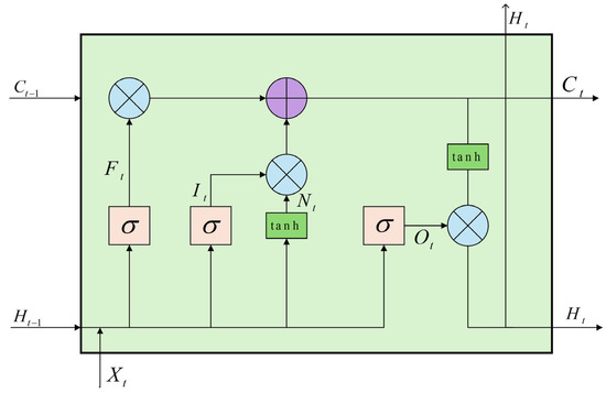 To address this, gate mechanisms and cell states were introduced into RNNs, giving rise to Long Short-Term Memory (LSTM) networks. LSTM units include a forget gate , input gate , output gate , and a cell state . The structure is shown in Figure 3.