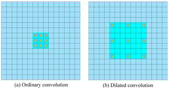 The receptive fields of ordinary convolution and dilated convolution are shown in Figure 4 as follows: