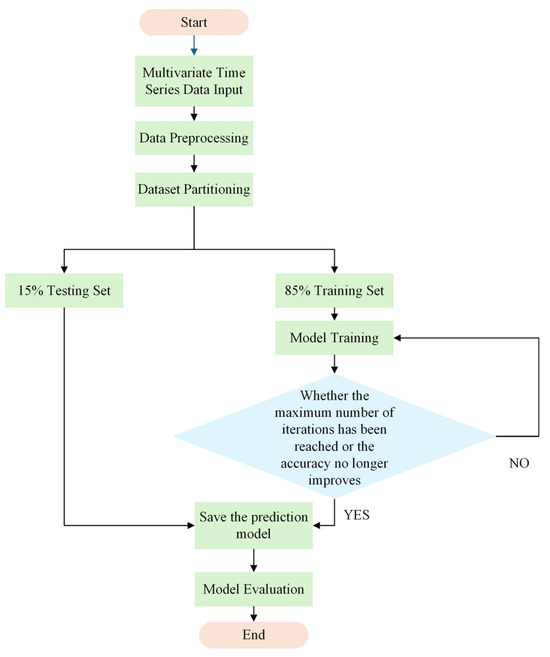 - Model Training: The preprocessed data is divided based on time sequence, with the first 85% used as the training set and the remaining 15% as the test set. When the model meets the accuracy requirements or reaches the maximum number of iterations, it is output and saved.