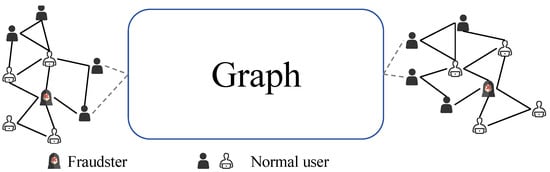 While significant progress has been made in this field, existing methods still face significant challenges. Early research primarily relied on statistical methods and community/clustering-based techniques. For instance, OddBall [11] detects anomalies by analyzing node degrees, weight distributions, or local structural patterns (e.g., star/clique subgraphs). NetWalk [12] introduced a real-time anomaly detection framework for dynamic networks, which jointly learns low-dimensional node representations via clique embedding and deep autoencoders while dynamically updating cluster centers using streaming K-means for anomaly identification. However, these methods typically rely on local structural features, making them less effective in capturing complex relationships and global patterns in graphs. With the advancement of deep learning, graph neural networks have emerged as a powerful tool for GAD. CmaGraph [13] pioneered the integration of dynamic community evolution into anomaly detection. Its three-module architecture (community detection, metric enhancement, and one-class anomaly scoring) reconstructs intra-/inter-community node distances, significantly improving sensitivity to structural anomalies. FAGAD [14] tackles the issue of anomaly signal loss caused by GNNs’ low-pass filtering. It proposes a frequency-adaptive GNN that enhances high-frequency anomaly feature extraction via all-pass/low-pass/high-pass signal fusion and a self-supervised bootstrapping strategy—without requiring labeled data. G3AD [15] addresses the adverse effects of anomalies on GNNs by designing a dual-auxiliary encoder (decoupling attributes and topology) and an adaptive caching mechanism. This prevents the model from directly reconstructing anomaly-contaminated graph structures, thereby improving robustness against subtle structural deviations in unsupervised settings. However, most existing GNN-based methods focus solely on either node attributes [16,17] or topological structures, resulting in limited sensitivity to structural anomalies. This limitation becomes particularly evident when anomalies manifest as subtle structural deviations rather than distinct attribute differences. For example, as shown in Figure 1, banks have identified anomalous credit card transactions where small purchases are immediately followed by large withdrawals across thousands of accounts. While individual accounts appear normal, fraudsters mask cash-out activities by coordinating transactions across controlled accounts. Such evasive patterns remain undetectable through neighborhood or attribute analysis alone. By encoding structural similarities, we can highlight shared behaviors among fraudulent nodes, such as connections to 5–10 peripheral accounts or 90% fund flow through these nodes, revealing hidden relationships to identify entire fraud networks rather than isolated suspicious accounts.