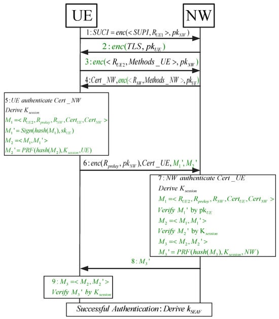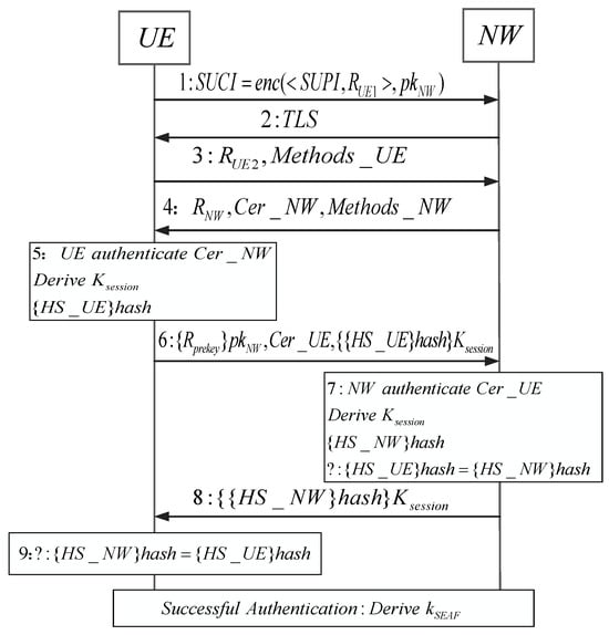 To establish a universal evaluation mechanism for EAP methods, P. Kumar et al. proposed the Degree of Mutual Trust (DoMT) framework, comparing EAP-TLS with mainstream methods such as EAP-LEAP and EAP-TTLS, and confirmed that EAP-TLS maintains an advantage in mutual trust level assessments [27]. In response to authentication needs for power terminals under 5G networks, Hu et al. incorporated an aggregate signature mechanism with the 5G EAP-TLS protocol model and used ProVerif to verify its security and low computational complexity, making it suitable for large-scale access scenarios [28].