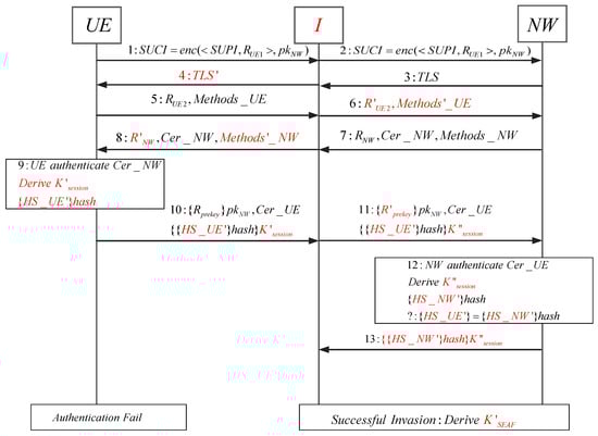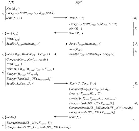 - Wang, Y.; Xiong, Y.; Huang, W.; Wu, J. A Formal Analysis Scheme for 5G Private Network Authentication Protocol. Inf. Netw. Secur. 2021, 21, 1–7. (In Chinese) [Google Scholar]