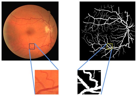 (1) Each retinal vessel image was randomly cropped into 400 patches of 96 × 96 pixels, as shown in the Figure 2.