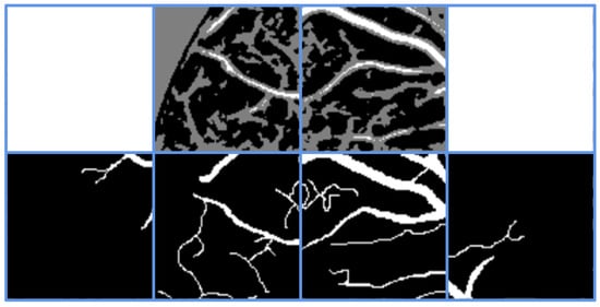 Here, denotes the i-th element value in the one-hot encoded vector corresponding to the vessel label, and denotes the i-th element value in the one-hot encoded vector corresponding to the background label. If filtering is not applied, then one must be 1 and the other must be 0, and the loss function becomes the traditional cross-entropy loss, as shown in Equation (8).