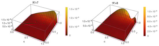 where u is a function of both and t, i.e., ; is the source function; and is a real number. Various numerical and analytical approaches have been used to solve the . For example, a Petrov–Galerkin finite element technique was applied to solving a space in [29]. A collocation method was developed in [30] to treat the using a kind of Chebyshev polynomial. The authors in [31] offered a spectral technique for finding solutions to the using shifted Lucas polynomials. Although this method demonstrated good accuracy, it required more terms in the retained modes compared to the presented method. The authors in [32] presented a numerical technique using approximations of radial basis functions to solve this problem. Finally, the authors of [33] applied the fractional reduced differential transform method to this problem. The disadvantage of the methods presented in [32,33] is that they offer a lower accuracy compared to that of the proposed method.