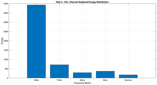 According to the analysis of Task 2, the Fp1 channel was identified as having the highest energy. This channel was subsequently decomposed into its sub-bands and reexamined for a more detailed analysis (Figure 18).