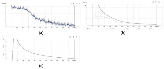 Training loss (a), validation loss (b), and learning rate (c) schedule of the Whistle model.